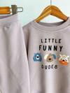 Ürün AçıklamasıSevimli karakter baskısı ve pastel tonlarıyla öne çıkan bu iki parçalı bebek takımı, miniklerin konforunu ve neşesini bir araya getiriyor. Lila tonlarındaki sweatshirt’ün ön kısmında “Little Funny Dudes” yazısı ve eğlenceli hayvan yüzleri yer alırken, alt parça cepsiz ve beli lastikli yapısıyla kolay giyilip çıkarılabilir. Yumuşak pamuklu kumaşı sayesinde hassas ciltler için uygundur. Günlük kullanım için ideal olan takım, 3–18 ay arası beden seçenekleriyle sunulur.