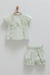 Caramell LITTLE GIRL ÖN NAKIŞLI BLUZ ŞORT TAKIM Yeşil