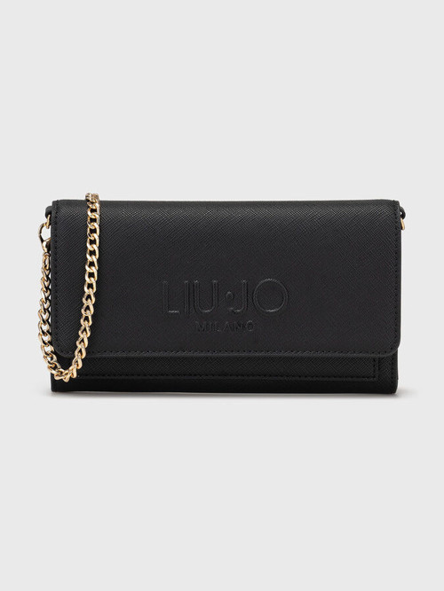Kabartmalı dokulu, çapraz askılı çanta; bir ana bölme, iç düzenleyici cepler ve bir iç fermuarlı cep bulunmaktadır. Manyetik düğmeli kapak, omuz zinciri ve ön kısımda kabartmalı Liu Jo logosu mevcuttur.