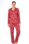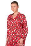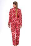 Canlı kırmızı zemini ve kış temalı desenleriyle dikkat çeken bu pijama takımı, yumuşak dokulu kumaşı sayesinde serin havalarda sıcak ve konforlu bir kullanım sunar.
