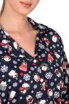 Lacivert zemin üzerine kış temalı desenleriyle öne çıkan bu pijama takımı, yumuşak dokulu kumaşı sayesinde serin havalarda sıcak ve konforlu bir kullanım sunar.