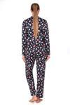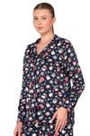 Önden düğmeli gömlek yaka üst ve rahat kalıplı düz paça alt, evde dinlenirken ya da uyurken özgürce hareket etmenize imkân verir.
