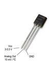 LM35 kaliteli ve düşük maliyetli analog çıkış veren sıcaklık sensörüdür. Ölçüm aralığı -55C ile 150C arasındadır. Ölçüm hassasiyeti 10mV/derece'dir. Arduino veya herhangi bir mikrodenetleyiciye kolayca bağlanabilir.