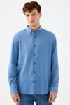 Loft markasının şıklığı ve kalitesiyle üretilen bu erkek gömlek, mavi rengiyle dikkat çeker.