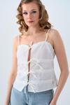 Yetişkin kadınlar için tasarlanmış olan bu bluz, beyaz rengiyle her türlü kombinle uyum sağlar.