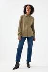 Loft markasının şıklığı ve kalitesiyle üretilen bu kadın gömlek, haki rengiyle dikkat çeker.