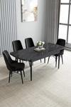 Asaella Mobilya Loft Siyah Mermer 80x132 Açılabilir Mdf Masa Yemek Odası Takımı, Mutfak Takımı 4 Adet Sandalye