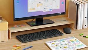Basit, tam özellikli, kablosuz ve plastik parçalarında en az %64 geri dönüştürülmüş malzeme kullanılarak üretilen MK250 setiyle kolayca bağlanın.