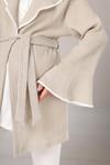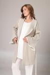 - Bej renkli jakarlı şal yaka dantelli detayları ile zarif bir görünüm sunar.