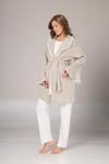 Lohusa Dünyası Kadın Bej Jakarlı Şal Yaka Dantelli Kışlık Özel Tasarım3'Lü Lohusa Hamile Sabahlık Pijama Takımı