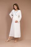 Lohusa Dünyası Kadın Ekru Kruvaze Dantelli Uzun Kol Lohusa Hamile 2'Li Gecelik Sabahlık Takım Seti - Image 1