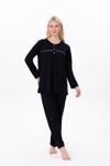 Beruflic Kadın Büyük Beden Siyah Düğmeli Pijama Takımı