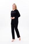 Pijamerry Kadın Büyük Beden Dantel Yaka Bambu Uzun Kol Pijama Takımı 5075 - 1 Adet Lacivert-2XL - Image 1