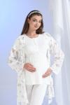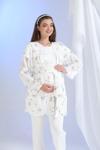 - Rahatlık ve şıklığı bir arada sunan çiçek desenli pijama takımı, hamilelik döneminde konforlu bir uyku deneyimi sağlar.