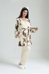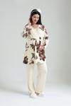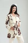 - Çiçekli deseniyle feminen detayları ön plana çıkaran bu pijama takımı, göz alıcı bir stil oluşturmanızda yardımcı olur.