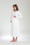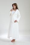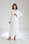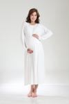 Lohusa Dünyası Kadın Ekru Jakarlı Şal Yaka Tam Boy Kışlık Uzun Kol Özel Tasarım Lohusa Hamile Sabahlık Gecelik Seti