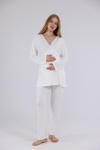 - Hamile koleksiyonuna özel olarak tasarlanmış bu pijama takımı, annelik yolculuğunuzda size eşlik edecek idealdir.
