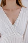 - V yaka detaylarıyla feminen çizgilere sahip olup, zarif duruşunu korurken rahat hareket etme imkanı tanır.