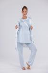 sabahlık, pijama üstü ve pijama altı ile tamamlanan bu set, bütünsel bir uyku deneyimi sunar.