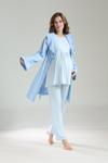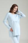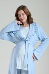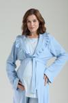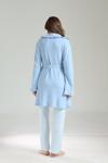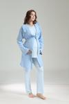 Lohusa Dünyası Kadın Mavi Jakarlı Şal Yaka Kışlık Uzun Kol Özel Tasarım 3Lü Lohusa Hamile Pijama Takım Seti