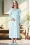 Lohusa Dünyası Kadın Uzun Sabahlıklı Cepli Biye Detaylı Lohusa Hamile Gecelik Sabahlık Takım - Image 1