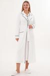 Kadın Uzun Sabahlıklı Cepli Biye Detaylı Lohusa Hamile Gecelik Sabahlık Takım
