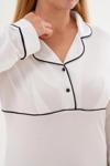 MDB MdbShop Sıfır Kol V Yaka Kadın Viskon Düz Yazlık Uzun Dantel Detaylı Hamile Pijama Takımı Sabahl - Image 1