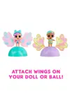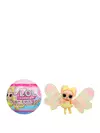 Kutu içeriği: 1 adet LOL peri figürü, 2 adet renkli kum, 1 adet boyama kâğıdı, kanatlar, aksesuarlar ve figür topu.