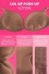 Lol up push up balenli sütyen, göğüslere dolgun ve dik görünüm kazandıran bir iç giyim modelidir. Ürünün kup kısmında yer alan pedler ve dolgular, ekstra destek sağladığı için göğüslere hacimli bir görünüm kazandırır. Bunun yanı sıra model, balenli tasarımıyla göğüsleri alttan kavrayarak sarkma ve şekilsiz görünümü de engeller.