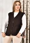 Lonca Tekstil Kadın Düğmeli Kahverengi Triko Anne Yeleği Büyük Beden Tüylenmez Cepli Rahat Kesim Yelpaze Desen XL