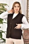 Kadın Düğmeli Kahverengi Triko Anne Yeleği Büyük Beden Tüylenmez Cepli Rahat Kesim Yelpaze Desen