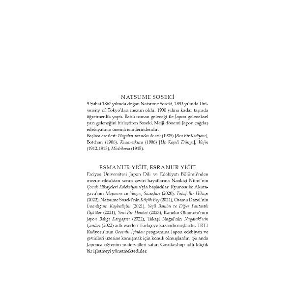 Viktorya dönemi Londrası’nı adımlarken karşınıza çıkabilecek her insana, her görüntüye dair izler taşıyan bu kitapta, tarihle iç içe geçerek edebiyatta zamansızlığa tanık oluyoruz. Britanya İmparatorluğu’nun Londra’da ele geçirdiği şimdi duygusunun yoksunluğuyla her ülkenin, her zamanın insanlarıyla karşılaşıyoruz. Değişmeyen insan malzemesi, Soseki’nin abartısız ama çarpıcı kelimelerinden süzülerek içimizdeki yerini buluyor.