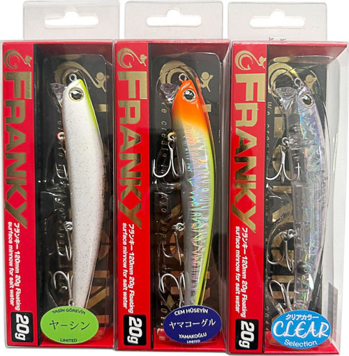 Dudaksız (lipless) minnow formuna sahip olan FRANKY, su direncini minimuma indirirken aynı anda baştan çıkarıcı ve agresif bir su akışı oluşturur. Gövde içine yerleştirilen tungsten ağırlık sistemi ve hareketli ağırlığı sabitleyen manyetik dengeleme, hem uzun ve stabil atışlar hem de çekiş sırasında keskin ve dikkat çekici aksiyon elde edilmesini sağlar.