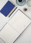 Bu mavi defteri, 110 gramlık en iyi kalite krem rengi dolma kalem dostu kağıt ve sert kapak ile ürettik. Vegan deri ile ve geleneksel yöntemlerle ciltledik..
