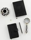 Siyah Vegan Deri Kılıflı ve Sert Kapaklı Günlük Ajanda MMXXV. Bu 2025 Günlük Ajandasını, 70 gramlık en iyi kalite krem rengi dolma kalem dostu kağıt, dokulu vegan deri kaplı sert kapak ve özel kılıfı ile geleneksel yöntemlerle ürettik. Kılıfı 12 x 19 cm, ajandası 10 x 17 cm ölçülerindeki bu MMXXV, dinamik tasarımı ve içeriği ile günlük bir ajandadan beklediğinizden daha fazlasını sunuyor. Roma Rakamları'ndan ilham aldığımız ürün logomuzu iç kapakta, marka sembolümüzü ayraç kurdelenin ucunda, altın varak yaldızlarla parlatılmış sayfaların yanında göz alıcı bir sadelikte kullandık.