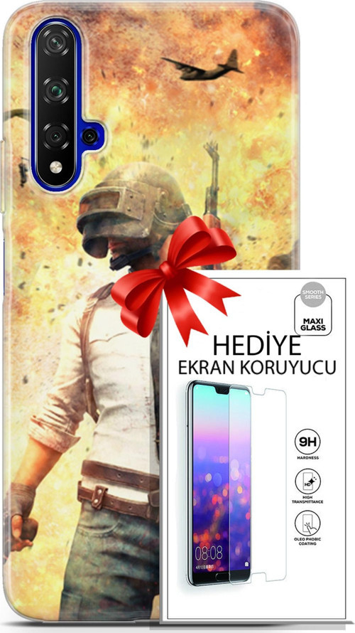 Huawei Nova 5T Kılıf Orijinal Seri Pubg 29 Uçak Paraşüt Leke Tutmaz Kapak + Ekran Koruyucu