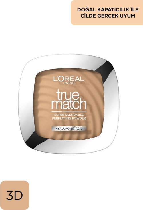 L'Oréal Paris'ten cilt tonuna ve dokusuna tamamıyla uyum sağlayan True Match Pudra. Kusursuzca yayılır, yokmuş gibi bir his verir. Kapatıcılık, pürüzsüz görünüm ve hafif doku bir arada. İçerisindeki aynası ve uygulama süngeri sayesinde pratik kullanım sunar.