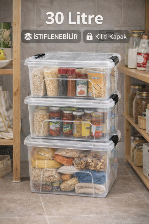 30 Litre Kilitli Depolama Düzenleyici 3 Adet Saklama Kutusu Ürün Ölçüleri :36 x 51 x 22