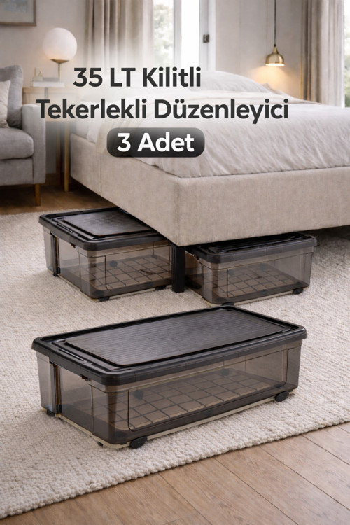 35 LT Yatak Koltuk Baza Altı 3 Adet Tekerlekli Kilitli Depolama Ürün ölçüleri : 40,7x60x22,5 (y) cm