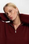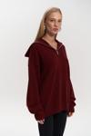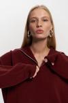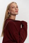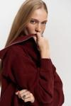 Uzun kollu, manşetleri ve etek ucu fitilli triko kazak. Geniş yakalı, fermuar detaylı tasarım.