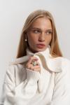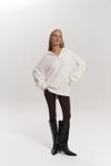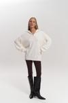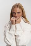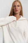 Uzun kollu, manşetleri ve etek ucu fitilli triko kazak. Geniş yakalı, fermuar detaylı tasarım.