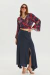 Los Banditos Çiçek Desenli Arka Bel Lastikli Derin Yırtmaçlı Etek - Image 1