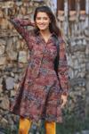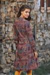 Ekol Kadın Desenli Beli Büzgülü Elbise 5113 Kırmızı
