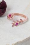 Sahira Jewelry Kalp Ritmi Pembe Taşlı Ayarlanabilir 14 K Rose Altın Kaplama Kadın Yüzük - Image 1