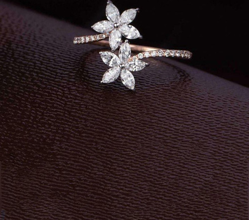 Sahira Jewelry Lotus Gümüş Unutma Beni Çiçeği Beyaz Taşlı Ayarlanabilir Kadın 14 K Rose Altın Kaplama Yüzük