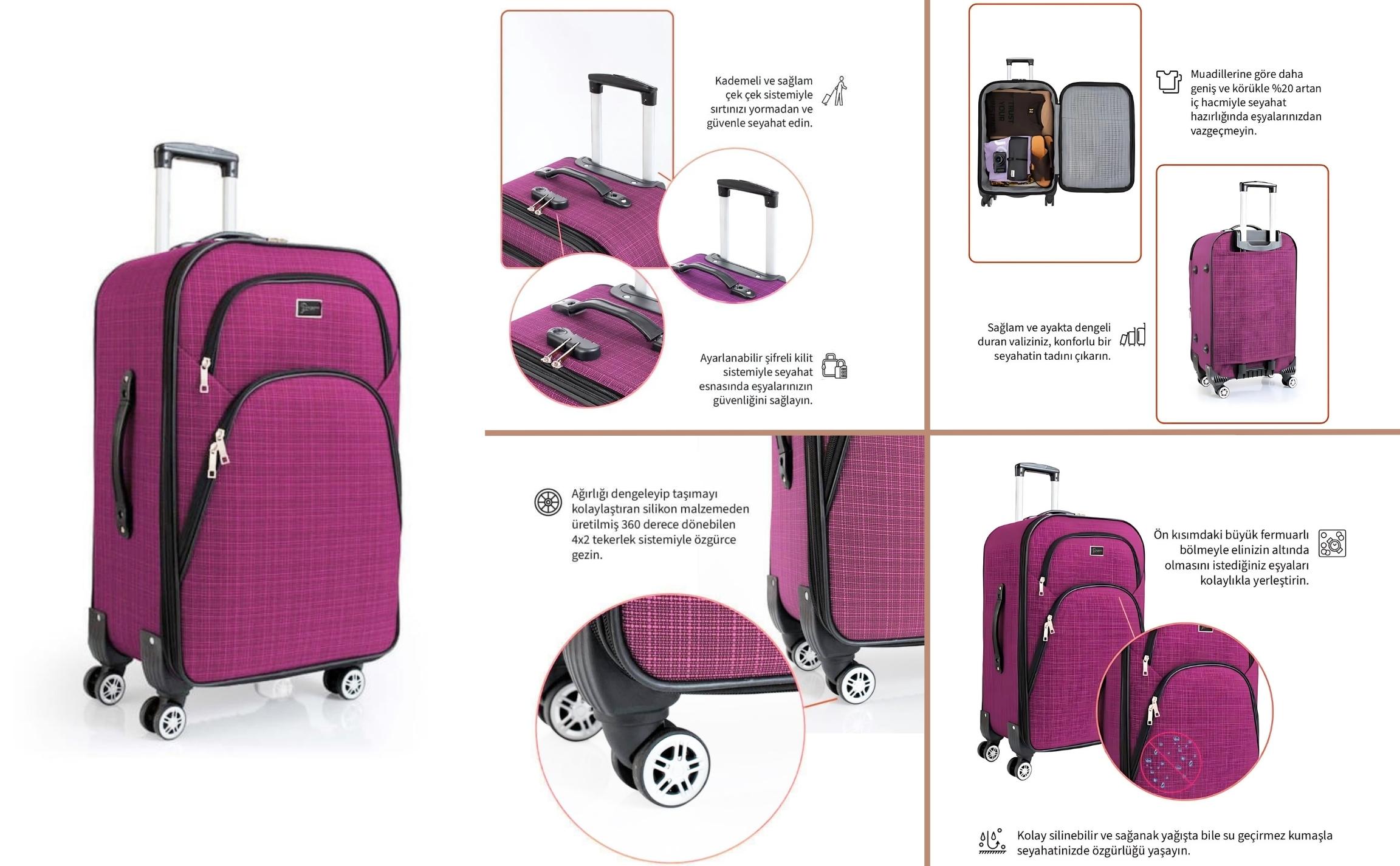 Bu valizin geniş iç alanı, tüm eşyalarınızı kolayca düzenlemenizi sağlar. Ön kısmındaki geniş fermuarlı bölme, küçük eşyalar için hızlı erişim imkanı sunar. Şifreli kilit mekanizması ile eşyalarınız her zaman güvende. Her bütçeye uygun, "ucuz valiz" arayışınızda, kaliteden ödün vermeden ihtiyacınızı karşılayacak bu set, uzun ömürlü bir kullanım sağlacaktır.