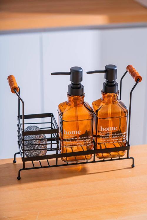Louvre ikili sıvı sabunluk seti, hem el temizliği hem de bulaşık deteranı için pratik bir çözüm sunar. 500 ml kapasiteli cam şişeleri sayesinde uzun süreli kullanım sağlarken, zarif metal taşıyıcı sepetiyle mutfak tezgâhınızda şıklığı tamamlar.