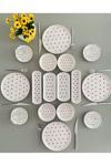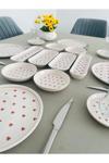 •4 adet 20 cm servis tabağı •4 Adet çay tabağı •4 Adet yuvarlak reçellik çerezlik •2 adet oval zeytinlik •2 adet küçük oval tabak