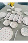 •4 adet 20 cm servis tabağı •4 Adet çay tabağı •4 Adet yuvarlak reçellik çerezlik •2 adet oval zeytinlik •2 adet küçük oval tabak