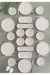 •6 Adet 20 cm Servis Tabağı •6 Adet çay tabağı •2 adet oval tabak •2 adet zeytinlik •4 Adet yuvarlak çerezlik reçellik